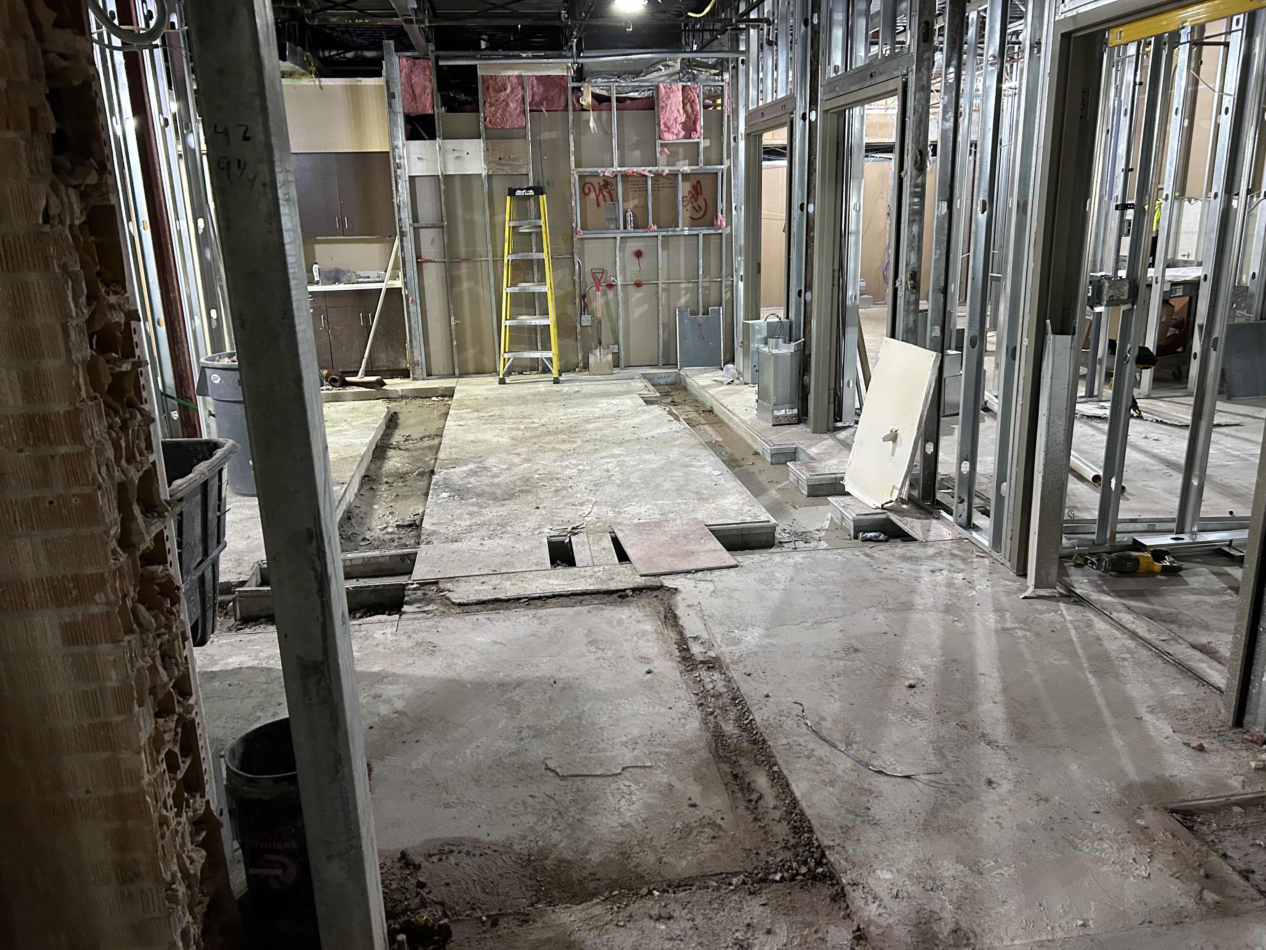 Concrete work was completed to allow for installation of underground plumbing and electrical.