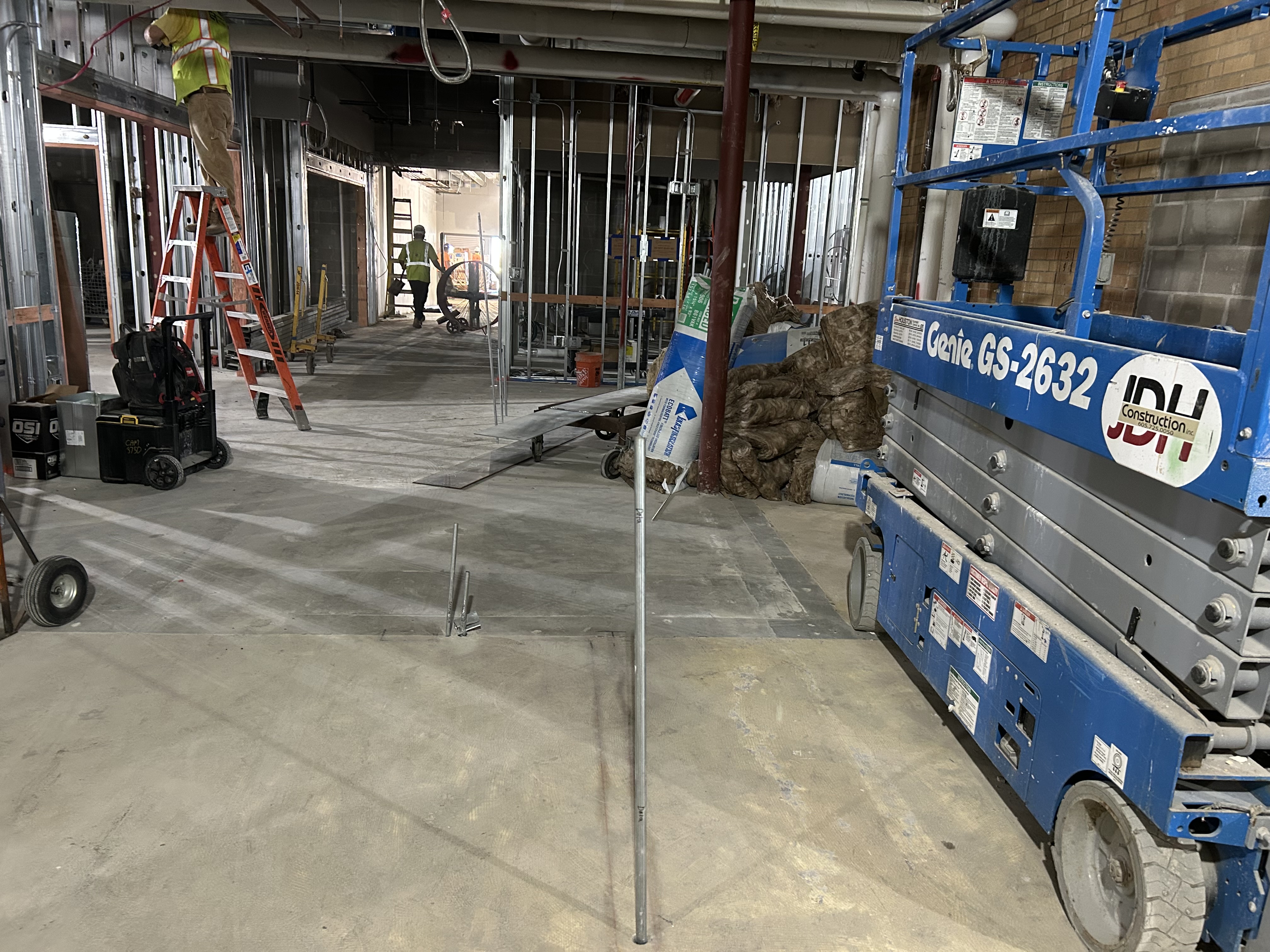 We continued with drywalling in hallways and in the clerestories. These clerestories are designed to allow natural lighting into the hallways of our new wing.