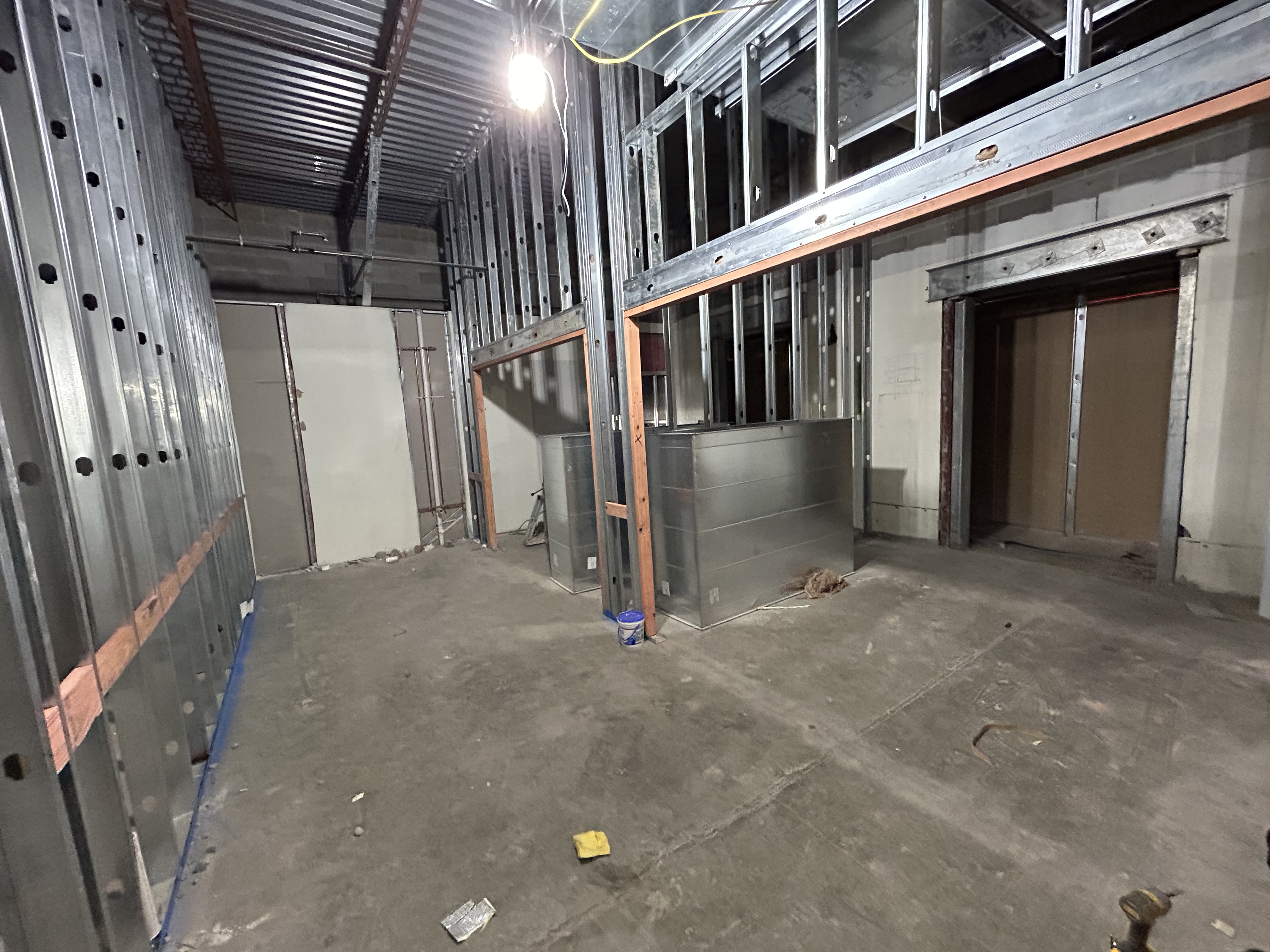Construction continued on the rooftop penthouse including drywall and housekeeping pads for the air handling units used for heating and cooling in the new and existing building.