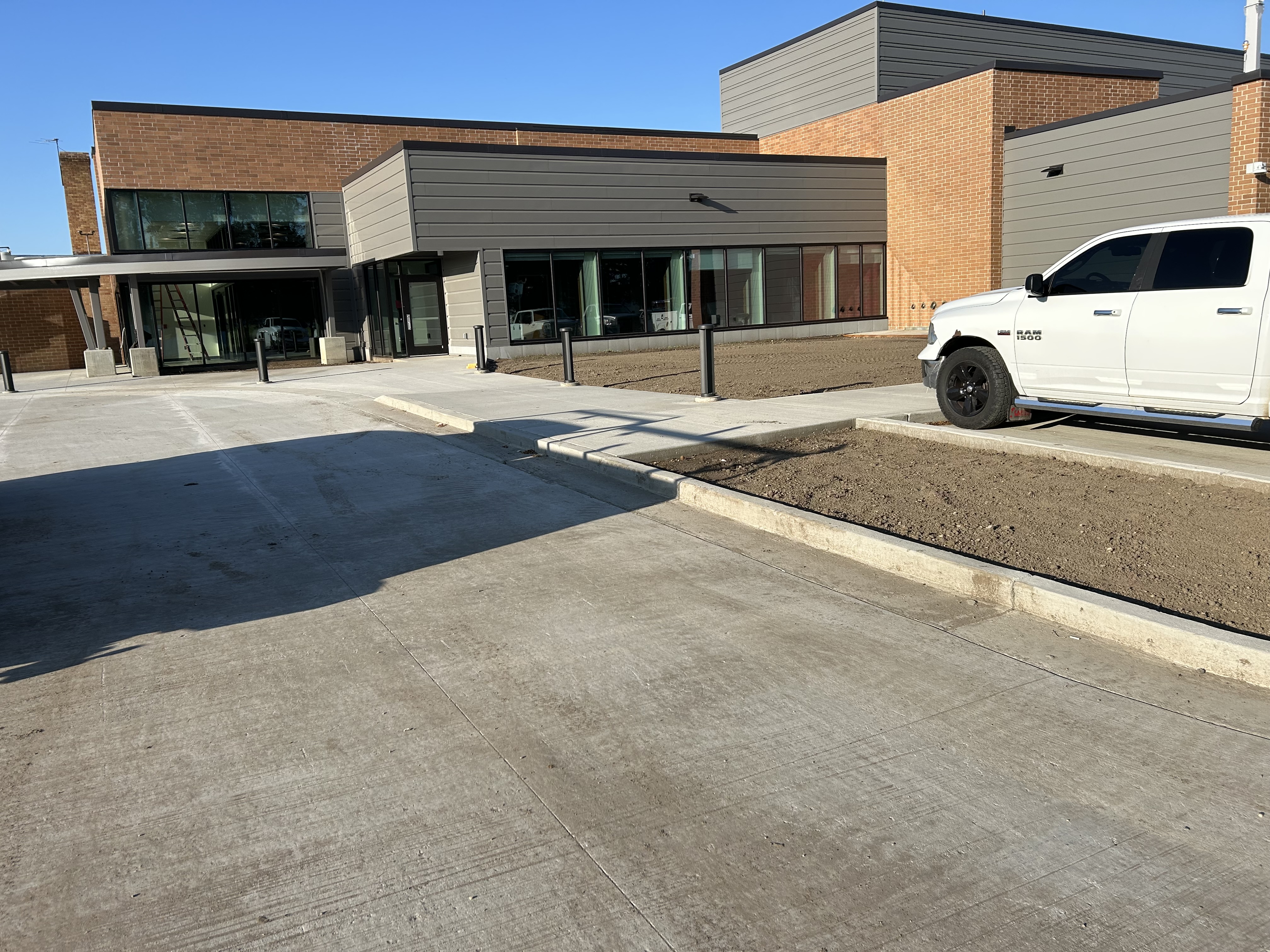 The ground was prepared and concrete was poured for the new parking pad for the MRI truck and ambulance entrance with direct access to the highway.