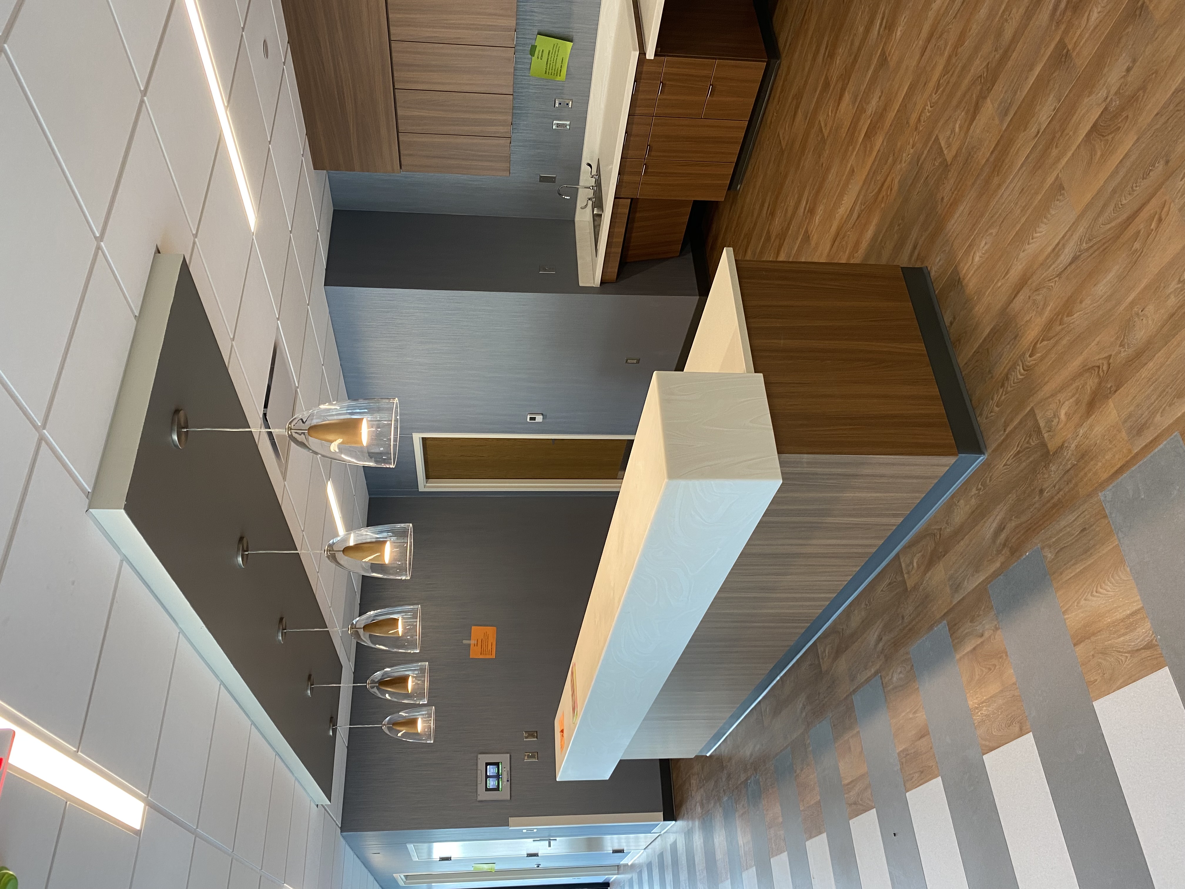 We continued our progress on the new infusion center. In April we finished the flooring, installed wallpaper, and installed glass dividers of the infusion bays. To the right, you can see the nurses station where staff will be able to see all patients in each bay and continuously monitor them all at once.
