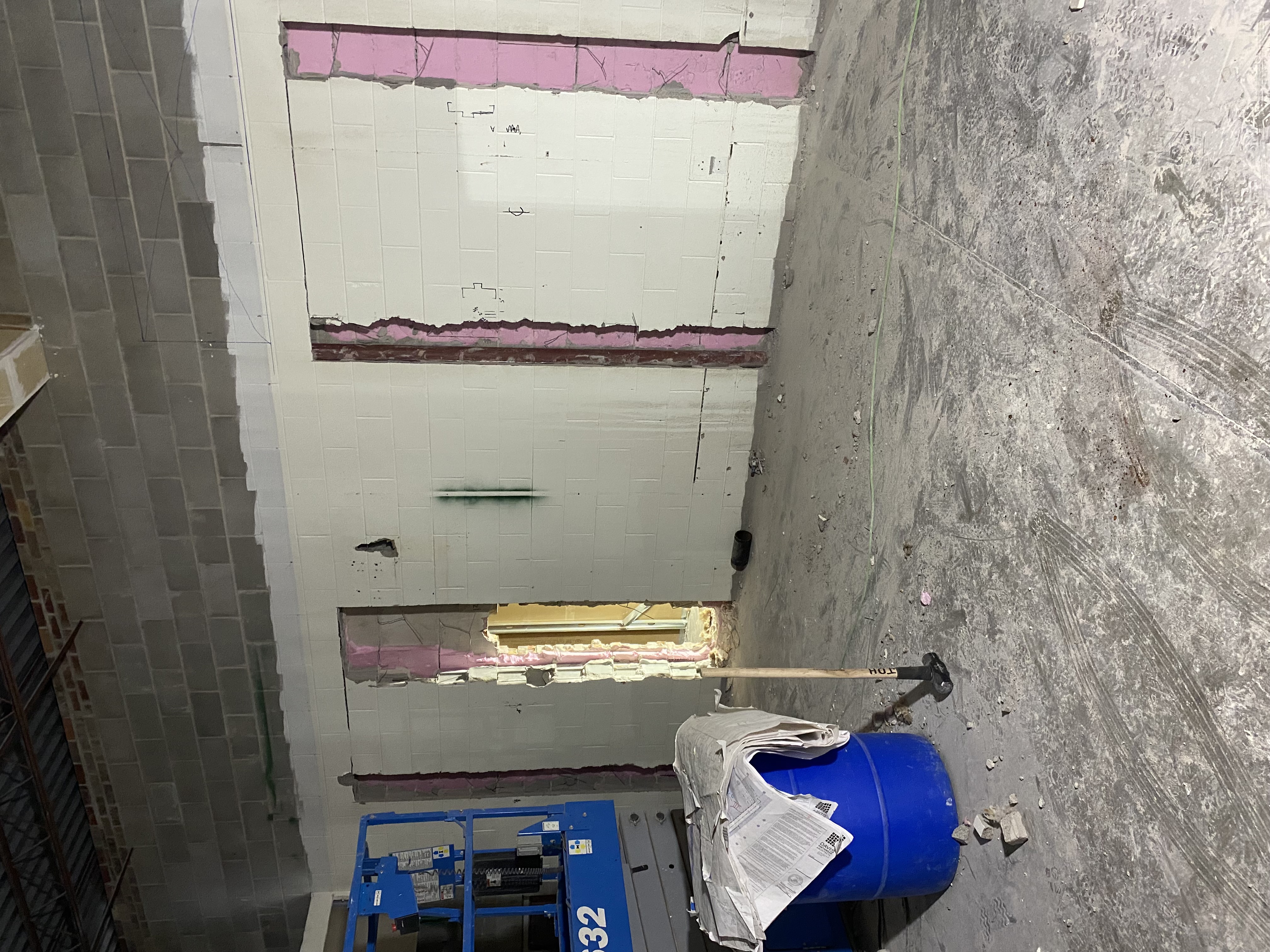 As part of the construction, various structural supports needed to be added or moved. Pictured here is a pilaster reinforcement where concrete and rebar are poured to create a concrete support for the existing building where our surgical department will be housed.
