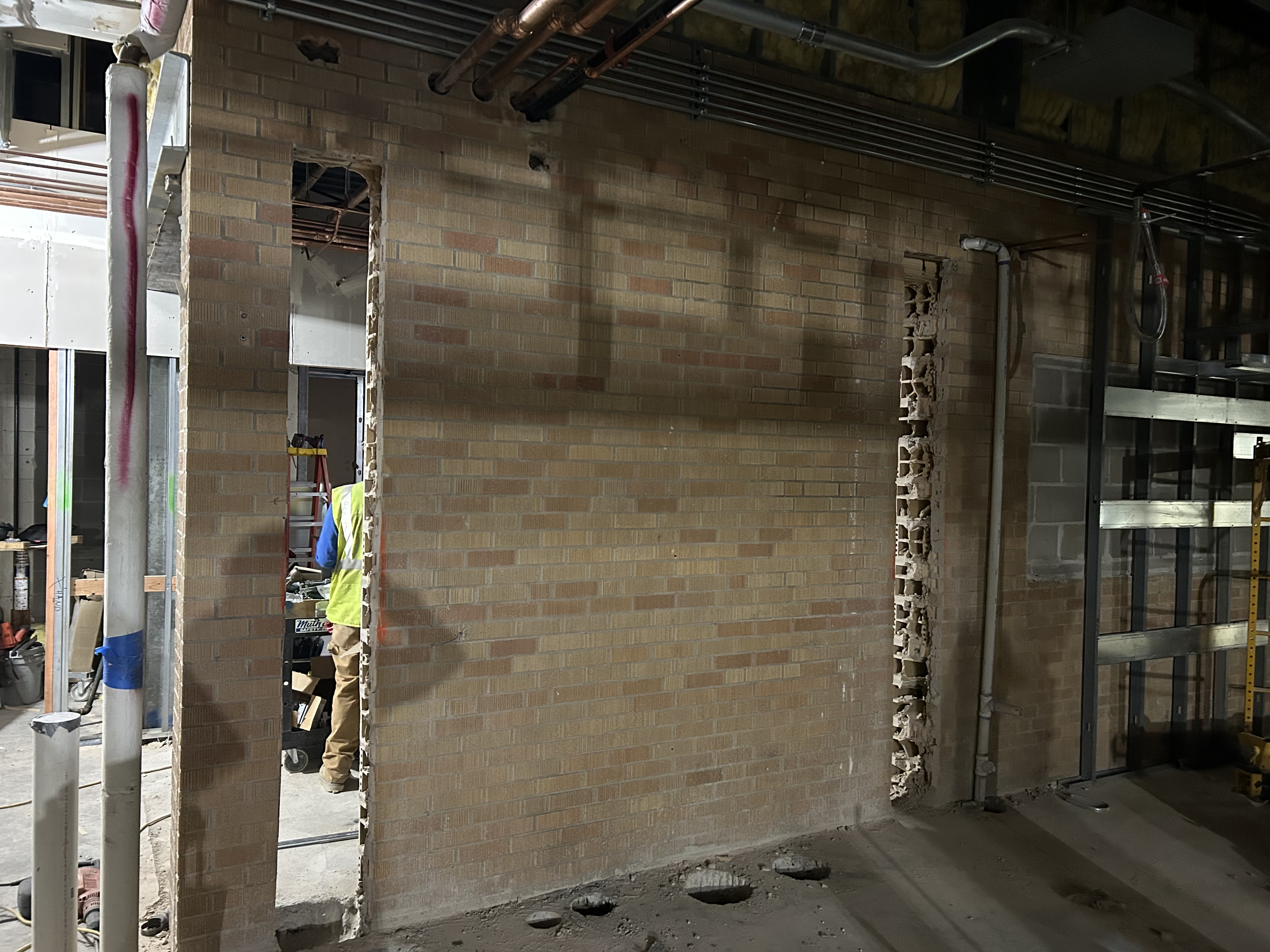 We demolished a portion of the old brick wall to allow for the new support steel around our emergency department nurses station.