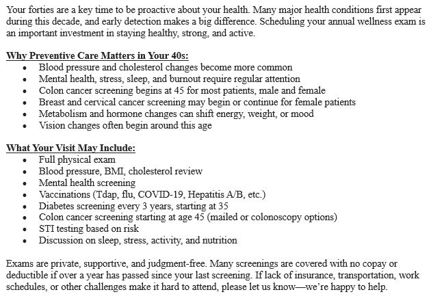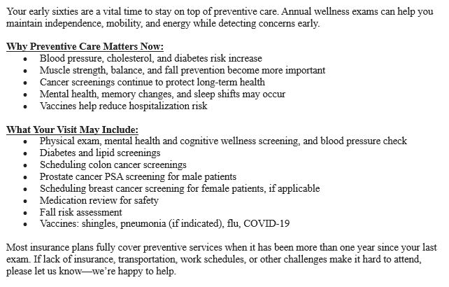 It's easy for recommended wellness checks to be forgotten year to year, but keeping up with them is one of the best things you can do for your health at any age. That's why we have started sending out reminders to past patients ahead of their birthday month. We encourage you to check out what a wellness exam at different ages includes and what makes them important at every age. If you'd like to confirm when your last wellness exam took place or schedule your next one today, please give us a call at 605-845-3692.