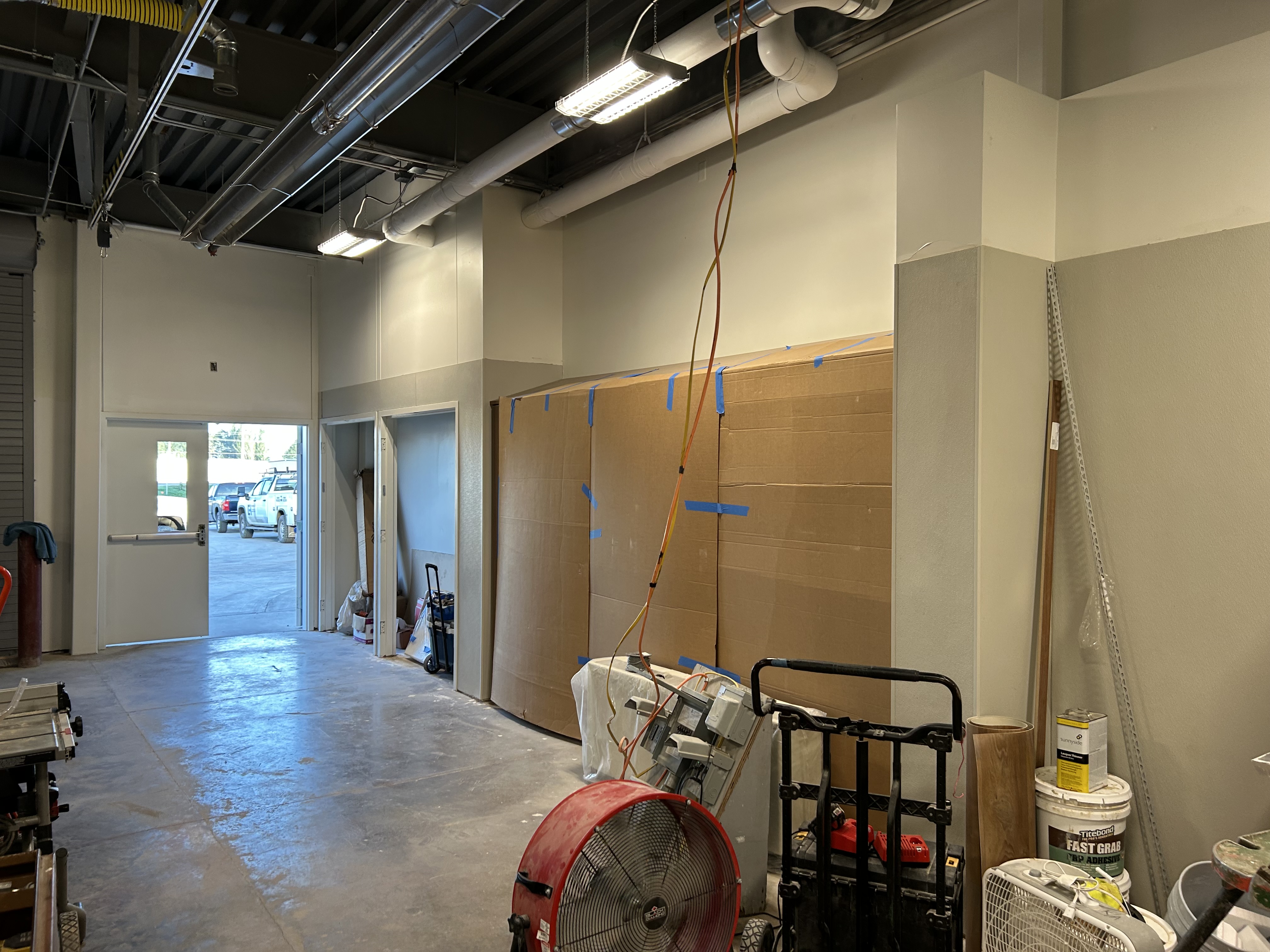 Taping and mudding was completed on the new drywall of the ambulance garage. Pictured here is where we'll later see cabinetry and a work station for our EMS staff.