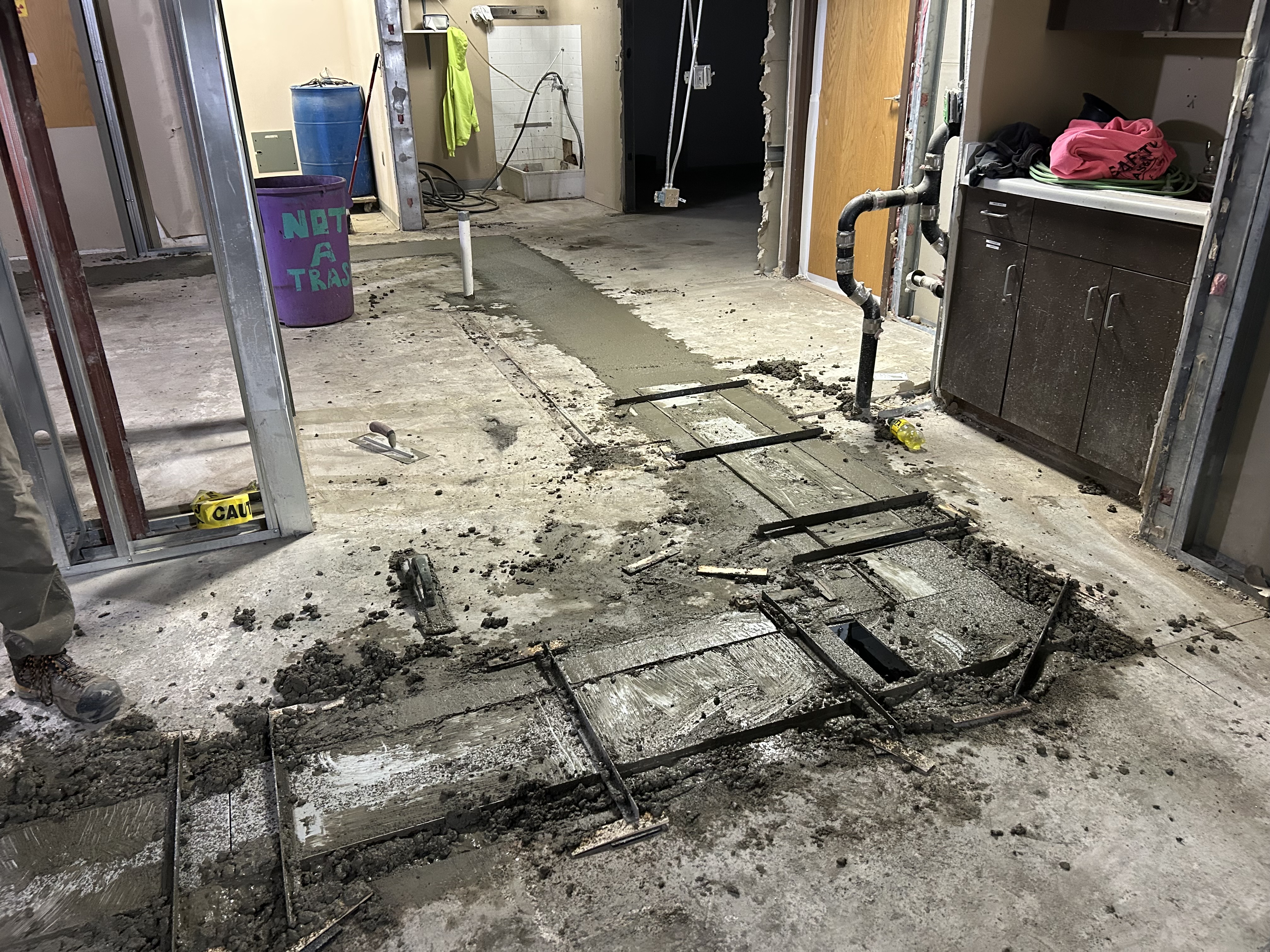 Concrete work was completed to allow for installation of underground plumbing and electrical.