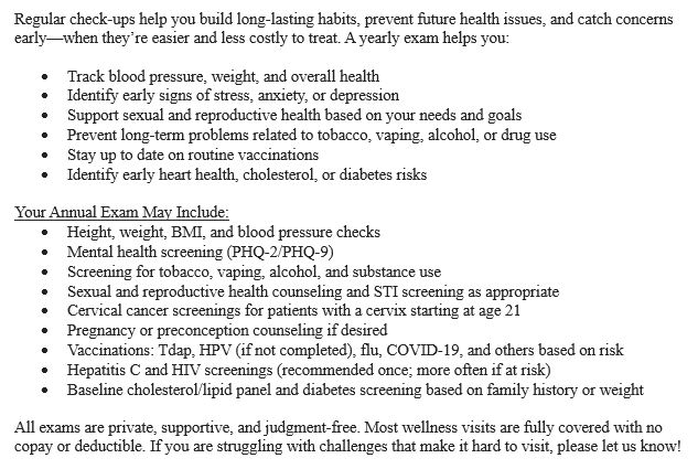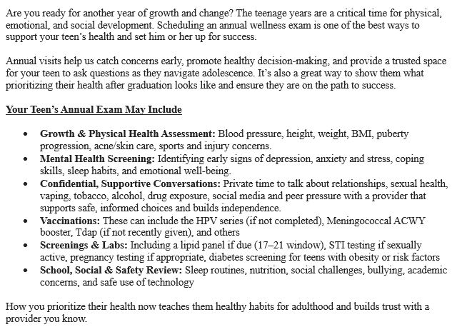 It's easy for recommended wellness checks to be forgotten year to year, but keeping up with them is one of the best things you can do for your health at any age. That's why we have started sending out reminders to past patients ahead of their birthday month. We encourage you to check out what a wellness exam at different ages includes and what makes them important at every age. If you'd like to confirm when your last wellness exam took place or schedule your next one today, please give us a call at 605-845-3692.